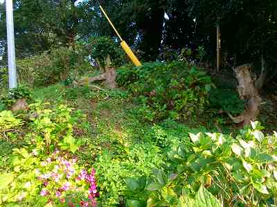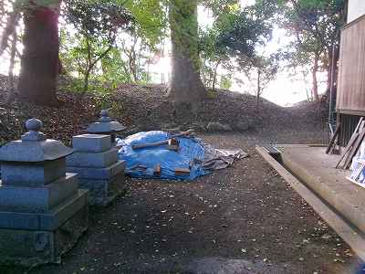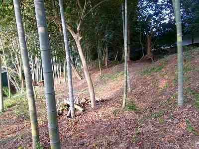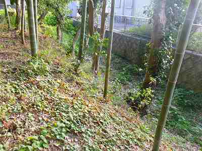 また、西側には、堀跡と思われる窪んだ地形も残されている。