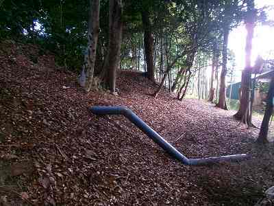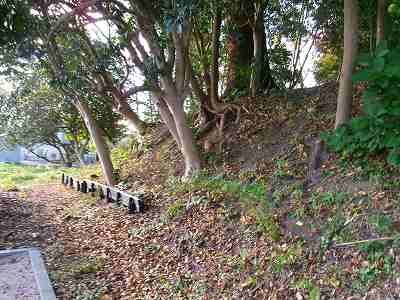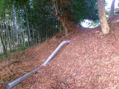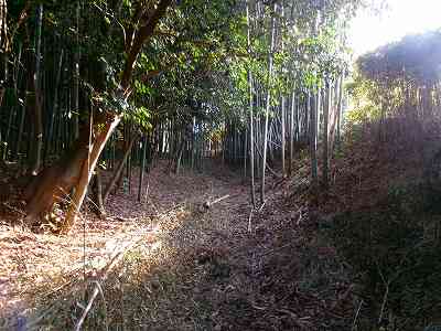 珍しいのは、堀が土塁のすぐ下ではなく、やや西側に離れたところに掘られているという点である。