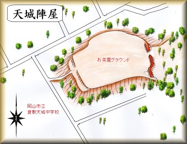 倉敷市藤戸町に、県立倉敷天城高等学校があるが、その東側の比高20mほどの台地が天城陣屋の跡である。