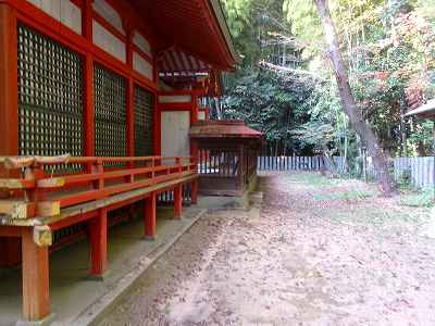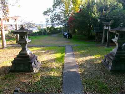 境内は神社背後の高い区画、神社の祭られている場所、一段低く、その南側の部分というように3段に形成されている。