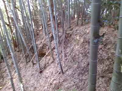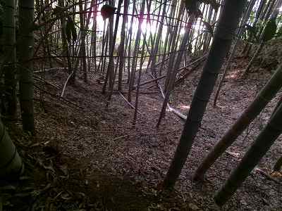 しかし、どこを見ても竹やぶで、登城道はなさそうである。