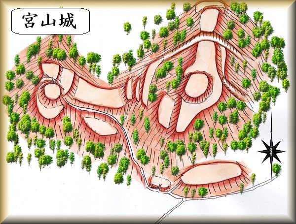 宮山城は、宝満の城主高橋氏の家臣岡松八郎左衛門の居城だったと伝えられている。