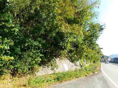 高の山城は、高野山城ともいい、県道60号線が蛇行するように通っている上にそびえている比高60mほどの山稜に築かれていた。