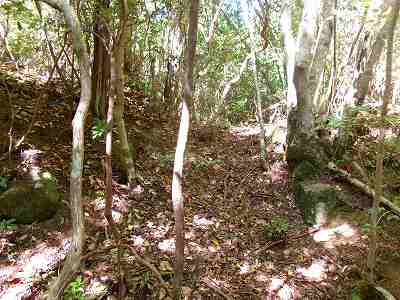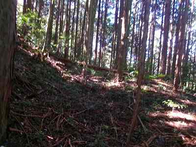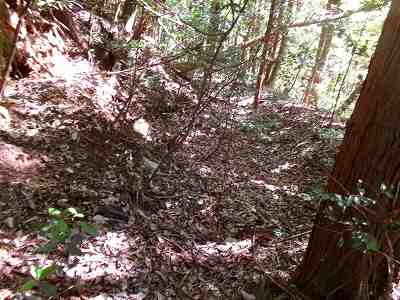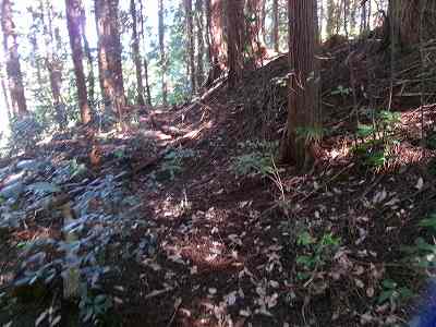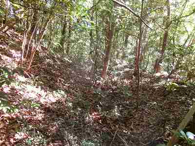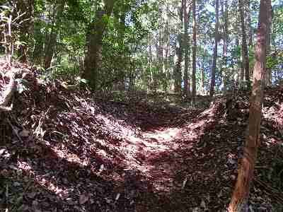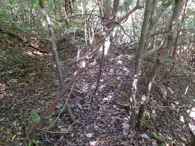 1郭と2郭との間の堀切は犬走り状に西側に延びており、その先の尾根を堀切によって分断している。