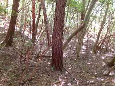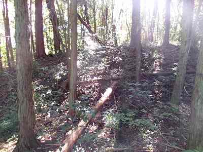 また南側の鉄塔の脇当たりの側面部に小規模な堀切の名残のような地形が見られる。城の南端はここまでだったかもしれない。