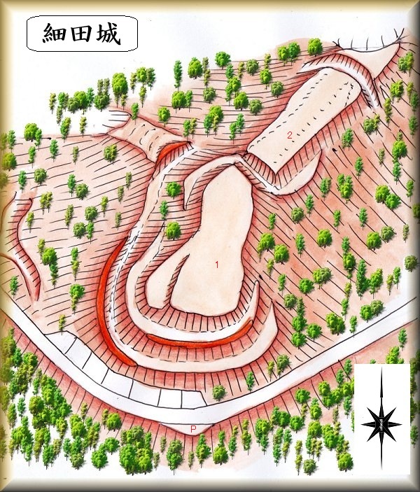 細田城の城主等、歴史については未詳である。