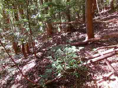 登ってすぐに腰曲輪に出る。この腰曲輪は西方の方に進んで行くと横堀状になっている。