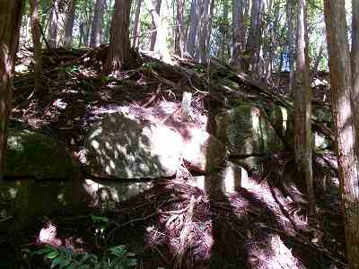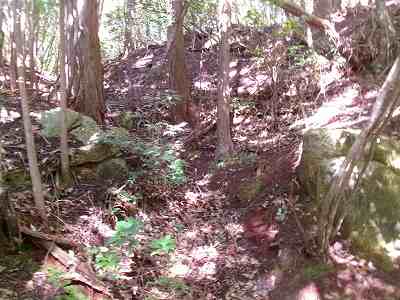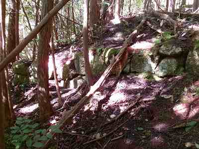 2郭の西側下には横堀があり、そこから南側に降りていくところにも石積みがあった。ここに門があったようだ。
