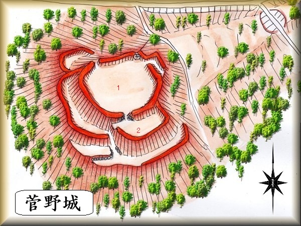 菅野城の場所。 入口の場所。