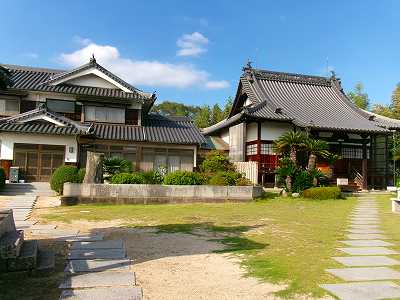 西方寺は城のような白壁を巡らせた寺院で、山麓居館を思わせるような場所である。