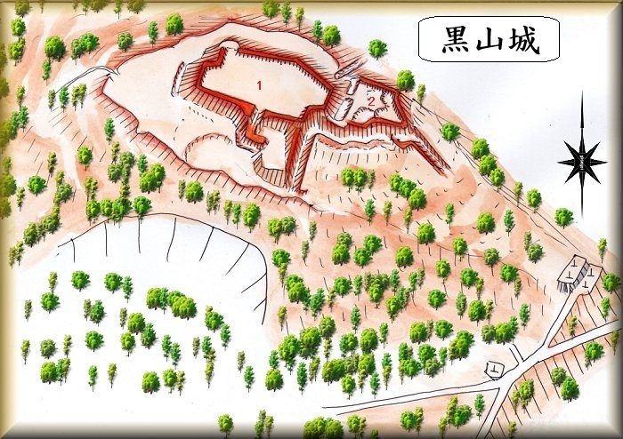 黒山城の場所。 下の墓地から登っていく。