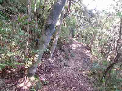 その上の尾根部分が6郭である。細尾根を削平して生み出した郭で、その先の5,4と続いていく。
