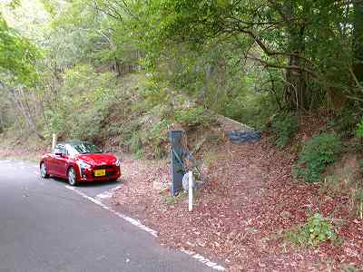 周囲の道路は狭いが北側の山麓下に駐車スペースがあったので、車はそこに停めさせていただいた。