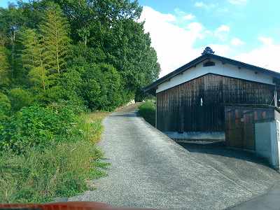 この墓地に向かう道の入り口はこの場所にある。南東側の山麓を通っている県道274号線は片側2車線道路なので、南西側方向からしか城山への道にアクセスすることができないので注意が必要である。
