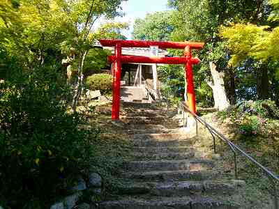 その先には稲荷神社の階段が見えてくる。この上が1郭である。