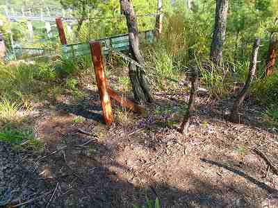 | スカイライン脇にある鉄塔整備道の入口。 | こんな山道を進んでいく。 |