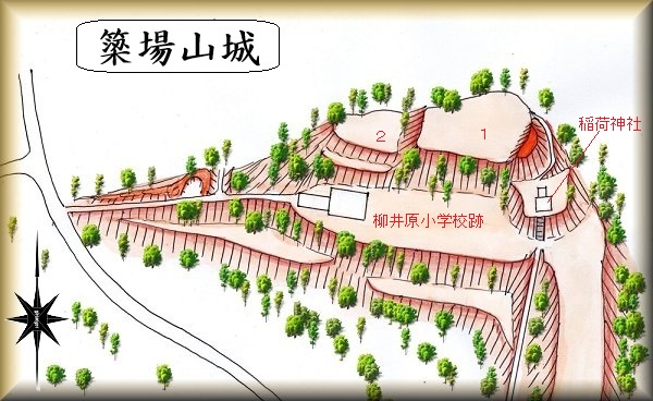 簗場山城の場所。