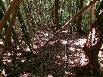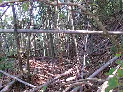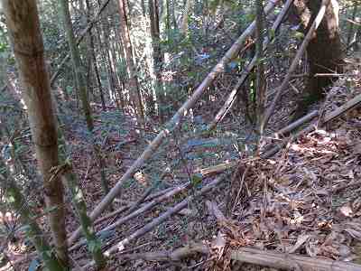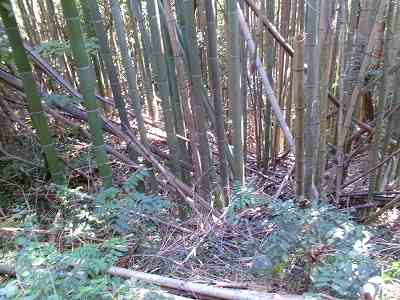しかし道は途中でなくなってしまい、倒竹のヤブになっていた。