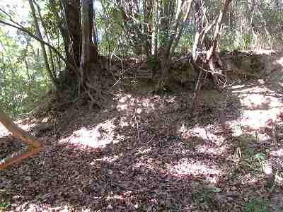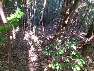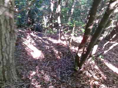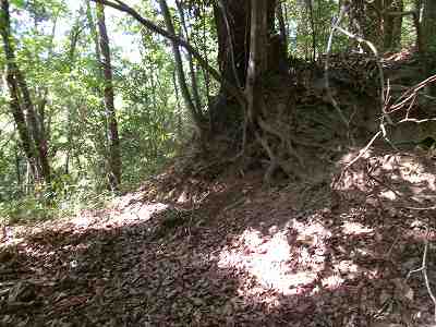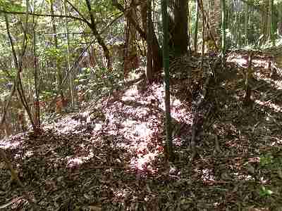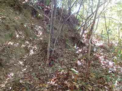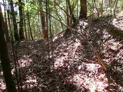 東陣はそれと南東に向かい合う尾根上にあって、こちらも比高60mほどである。