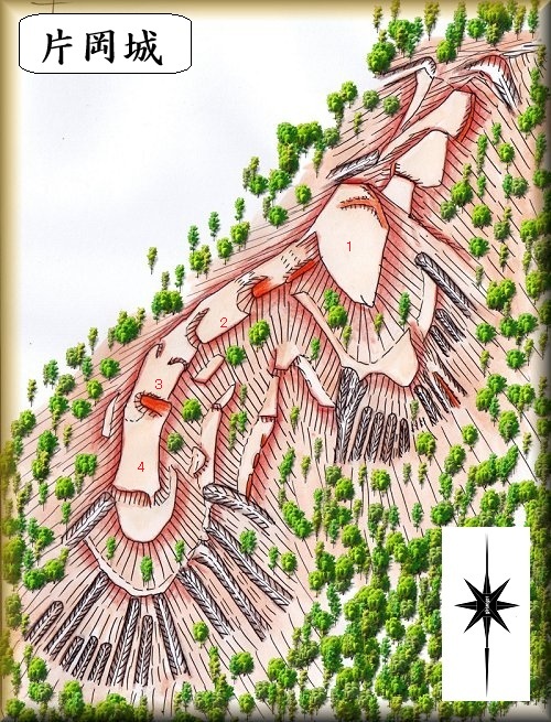 鳥観図は参考までに『岡山県中世城館跡総合調査報告書』の図に基づいて作成してみたものである。