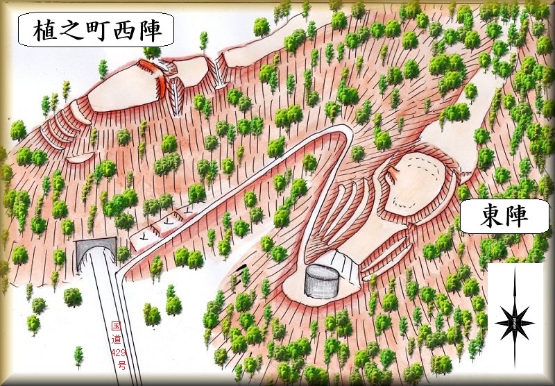 植之町西陣及び東陣は、鍛冶山城から派生する尾根の南端部近くに築かれた城である。