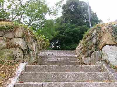 階段を登っていくと石積みの立派な虎口が見られたが、石積みは後世のものであろう。