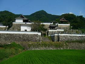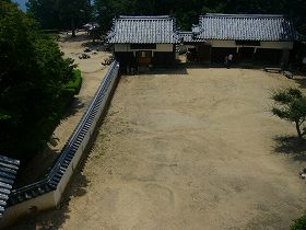 | 本丸から見た天守。二層の小規模な天守ではあるが、派手な派風があったりして、わりと瀟洒な印象を受ける。二層とはいえ、やはり天守というのはスペシャルな建物なのである。ちなみに、本丸では冷たいお茶を無料で飲むことができる。ちょっとしたことだが、真夏ではこれがとてもうれしかったりする。 | 天守の裏側にある二重櫓。城内には平櫓が多く、二層のものは、これと天守くらいなものである。 |